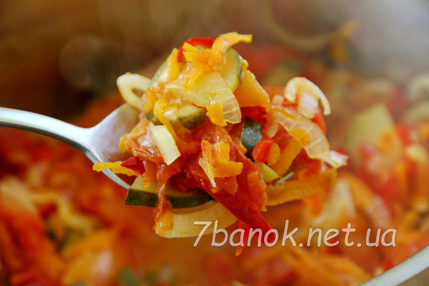 Ставимо каструлю на вогонь і накриваємо кришкою. На середньому вогні доводимо масу до кипіння, потім вогонь знижуємо до мінімального і тушкуємо 15 хвилин.