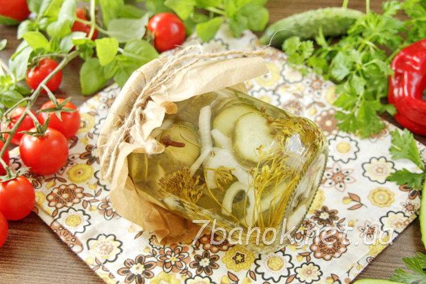 *Огірків у банку може увійти трохи більше або менше: це залежить від ретельності їхнього укладання та розмірів кружалець огірків.